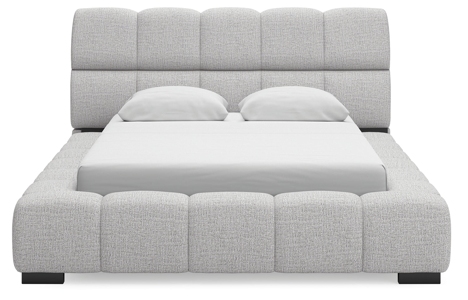 A divine merger of casual and contemporary design, this California king upholstered bed is the upgrade you've been dreaming of. Plush, deep pillowed tufting creates an impressive silhouette that's just as comfortable as it is stylish. And the textured light gray Next-Gen Nuvella™ performance fabric is soft and easy to clean. Now there's a bed with staying power.