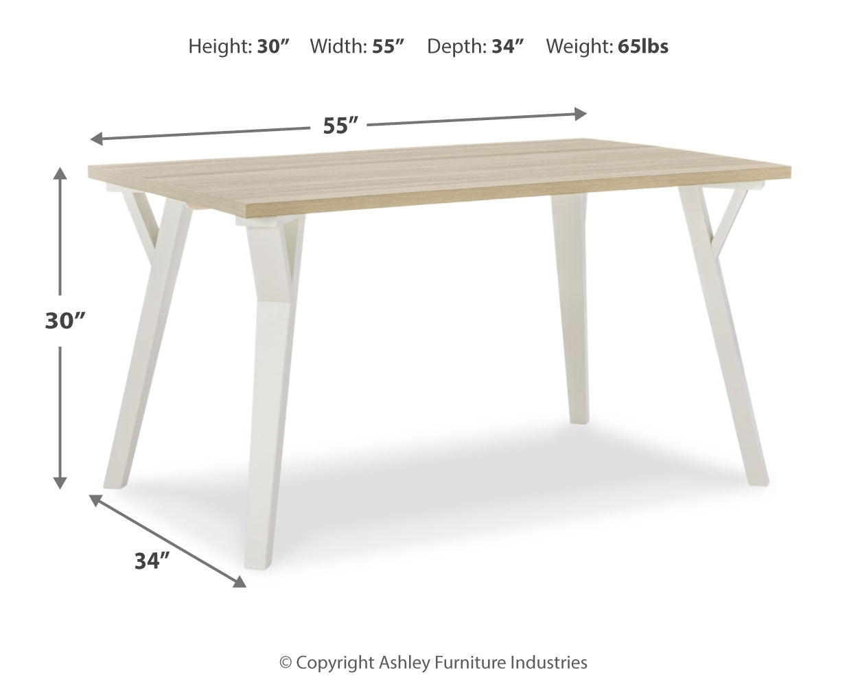 Rectangular Dining Room Table | 34" | 55" | 30" |