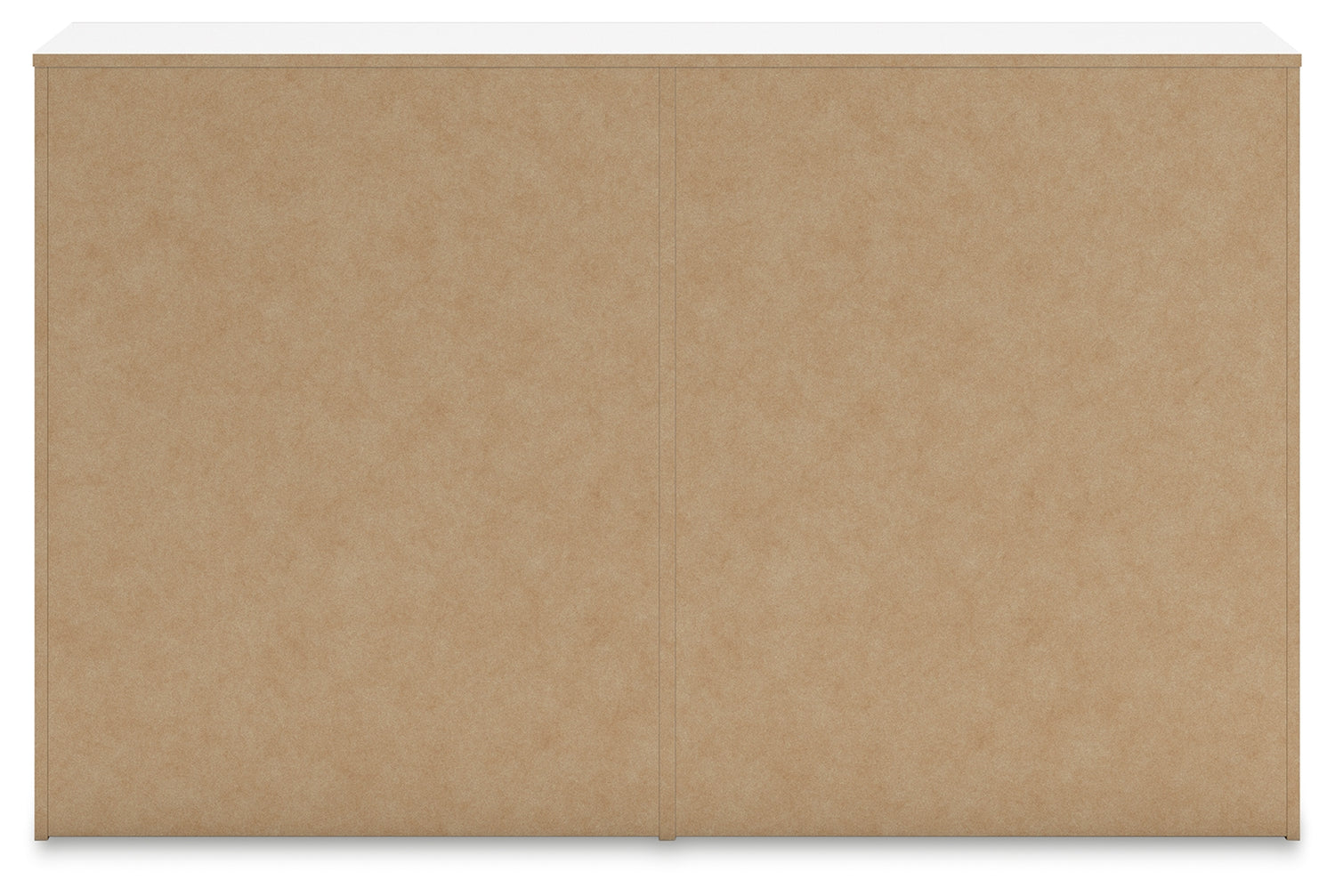 - Drawer interiors are lined with a faux linen laminate for a clean, finished look