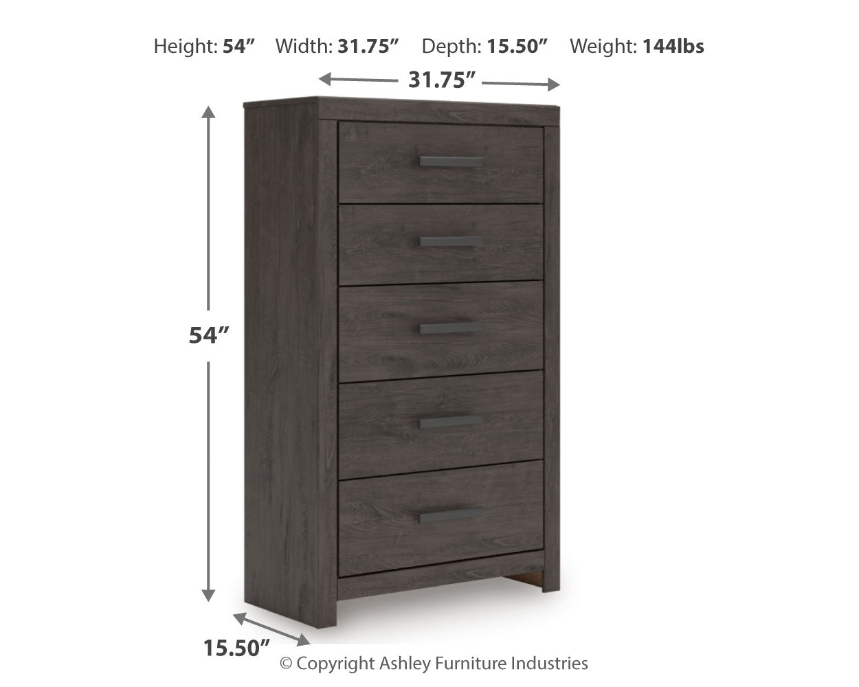 | Five Drawer Chest | 32" | 15" | 54" |