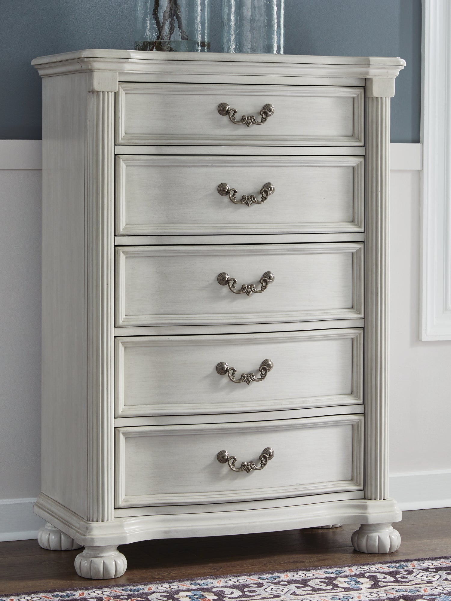 Sam's Furniture - Ashley Furniture - Montelaine Bedroom - Five Drawer Chest / Antique White - B795-46